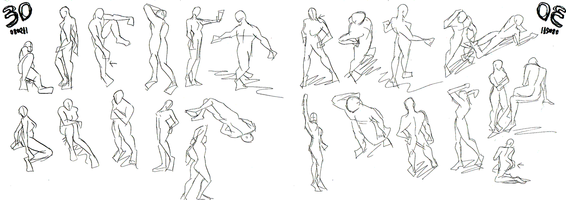 30秒ドローイング、ランダムポーズの後。