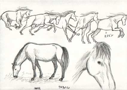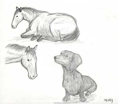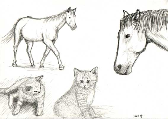 ポーマニを終えてからのクロッキー。猫さん犬さん馬さん。