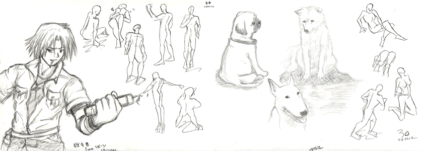 ポーマニから始め、ラクガキ、ルーミス本模写、動くポーズ集、クロッキーでおしまいでした。080214-jin_2.gif
