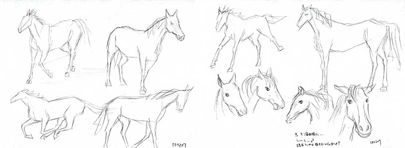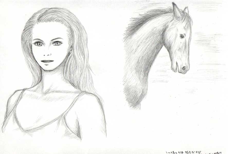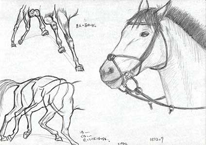 同じモデルさんの違う写真からクロッキー。と馬さん。